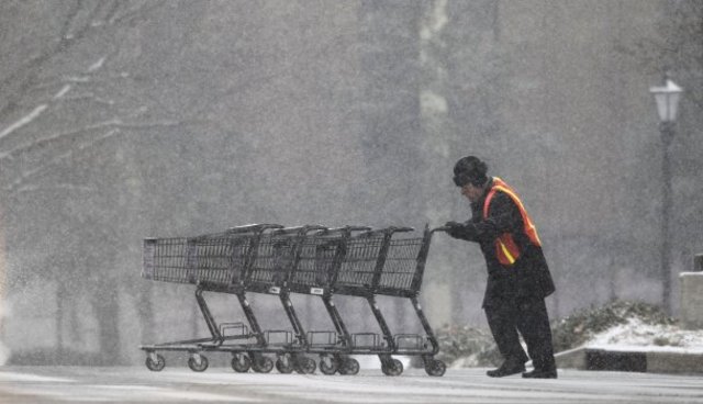 After a bit of a struggle, he popped his truck into gear and slowly drove the snow blown back roads to the Cash-N-Carry. If there were anybody on the roads today he would make for a peculiar sight. Trailing directly behind his truck was a half dozen shopping cars tethered and rolling in unison. He back shifted his truck to a near crawl and the truck came to a complete stop in the parking lot. The sky had darkened and snow swirled amongst suddenly lit streetlights. He walked around to the back of the truck and unhooked the carts from the tether of the truck. He then glided them into the proper place in the parking lot.