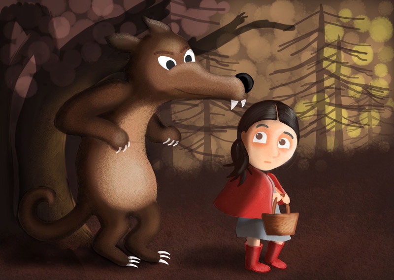 One day Little Red Riding Hood’s grandmother, who lived in the woods, fell ill and Little Red Riding Hood’s mother asked her to bring her a basket with a cake and a pot of butter. Little Red Riding Hood happily accepted. – Be very careful, Little Red Riding Hood, and don’t linger in the woods. – Yes mom!