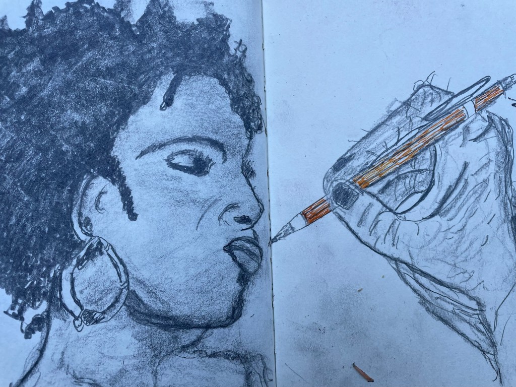 I honestly admit I’m not a great artist, but I still enjoy it. Right now I’ll concentrate on portraits. I enjoy drawing portraits, but I never do it consistently the same. I should measure, but I don’t imagine there’s a technique of where you should start. Life is about that spontaneity. At least mine is. I did buy a book on painting yesterday.